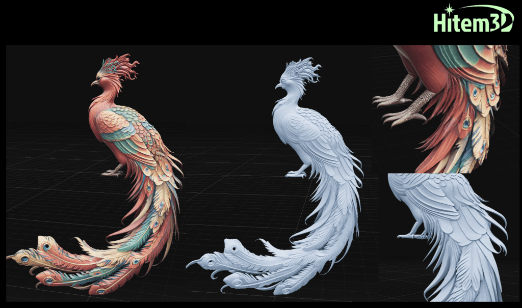 Through an advanced de-lighting pipeline, Hitem3D 2.0 restores authentic material logic—from the raw brass of gears to the true pigment of wings. Regardless of capture conditions, the resulting models maintain pure, stable color profiles, serving as industrial-grade masters ready for full-color 3D printing.