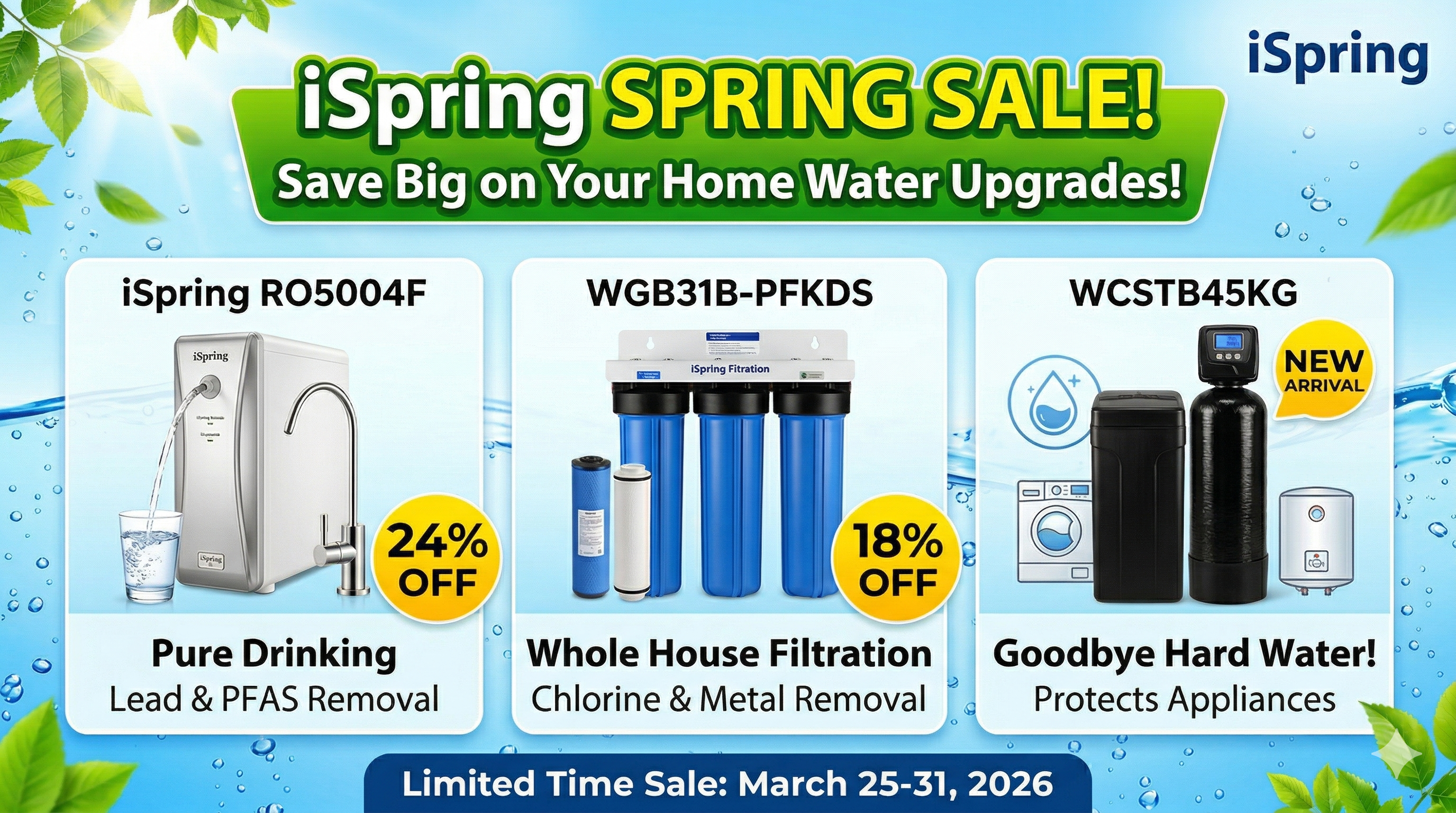This spring, don’t just clean your home – upgrade the water your family uses every day. From drinking and cooking to bathing and appliance care, better water can make a noticeable difference in comfort, health, and peace of mind. To help homeowners and small businesses make that upgrade more affordably, iSpring is offering limited-time Spring Sale pricing from March 25 to 31, 2026, on three standout solutions: the RO5004F tankless reverse osmosis system, the WGB31B-PFKDS 3-Stage Whole House Filtration System, and the new WCSTB45KG Whole House Water Softener System.