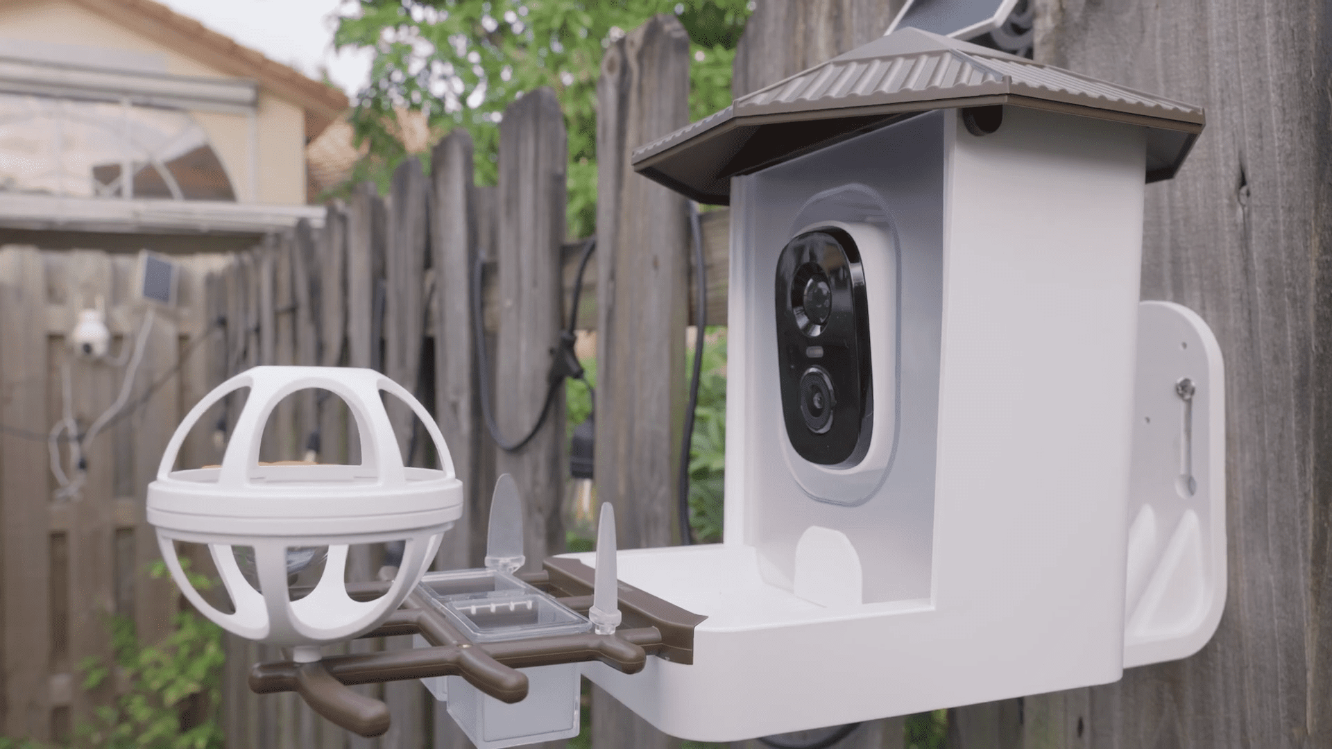 Mounting the unit requires a drill and a bit of patience. You screw the bracket into a fence or wall, then slide the feeder body onto it. The solar panel is the real hero of this setup. You mount it separately, ideally in a spot that gets maximum sunlight, and plug it into the USB-C port on the back of the feeder.